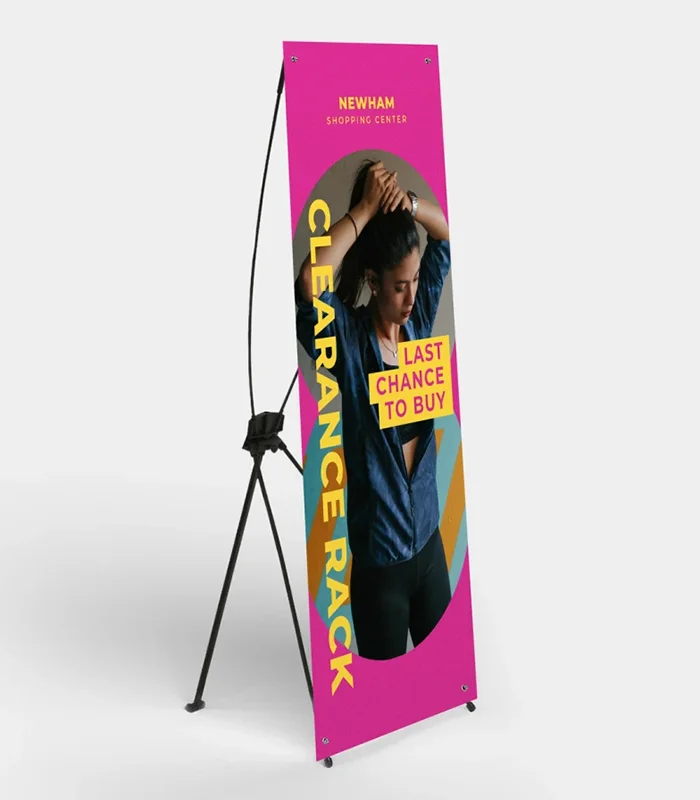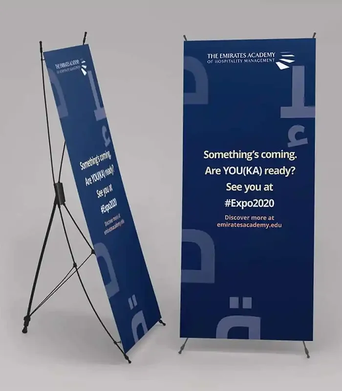 รับผลิตเอ็กซ์สแตน ป้ายโฆษณาโครงเหล็กรูปตัว X พับเก็บ ขนย้ายง่าย เหมาะสำหรับการใช้ในงานจัดบูธแสดงสินค้า พิมพ์ด้วยระบบ UV Inkjet บนกระดาษ PP จึงสามารถตั้งแสดงทั้งใน Indoor และ Outdoor ได้โดยที่สีไม่จืดจาง รับประกันนานถึง 2 ปี มี 2 ขนาด